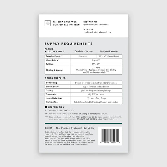 Pembina Backpack Quilted Bag Pattern by The Blanket Statement