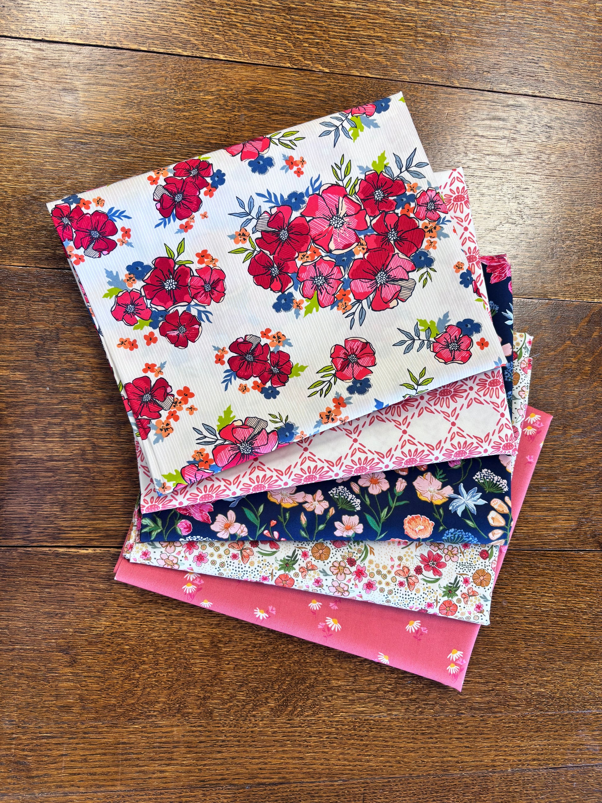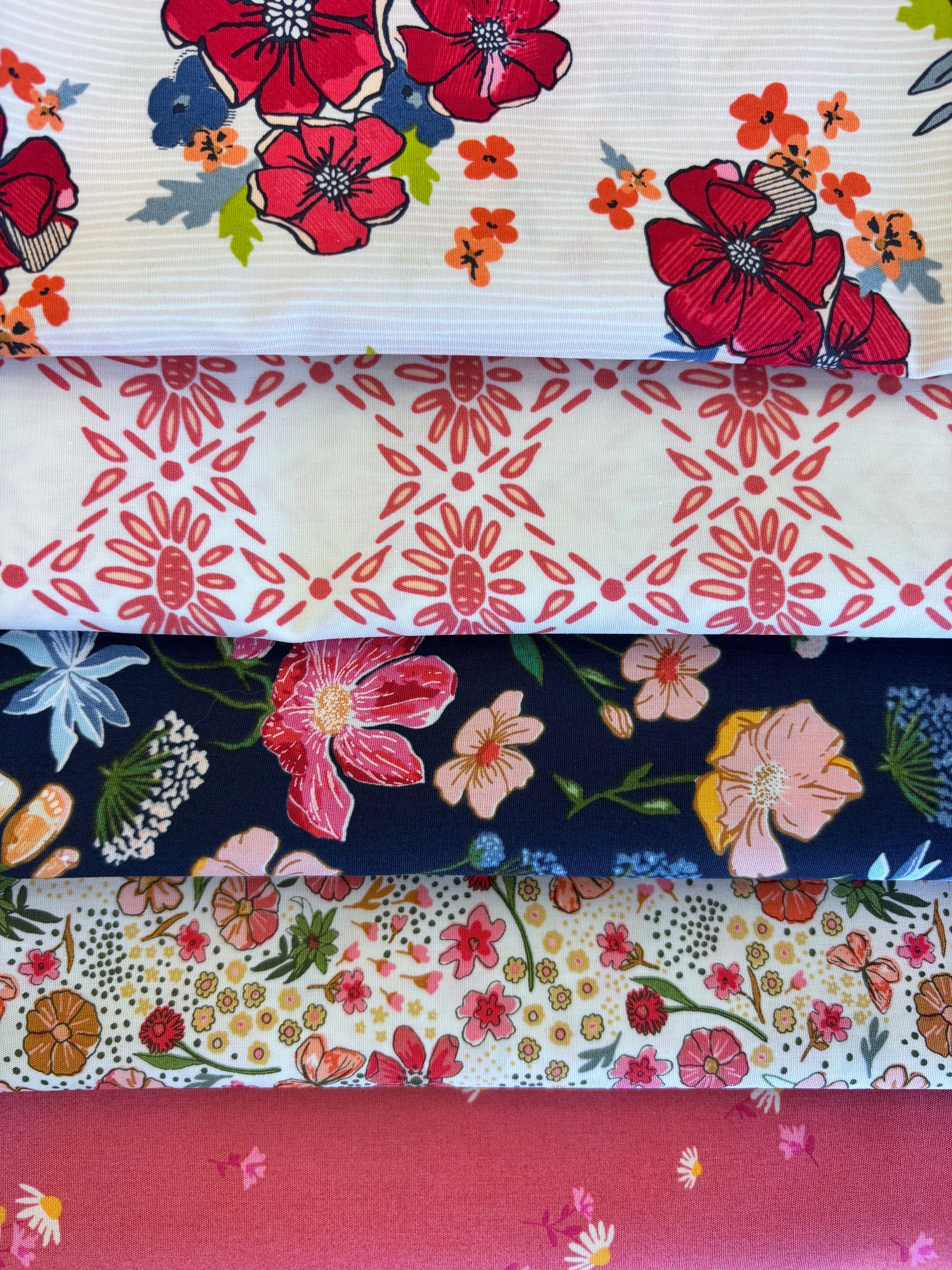 This bundle includes 5 one yard cuts of each fabric shown from the The Flower Fields Collection by Art Gallery Fabrics.