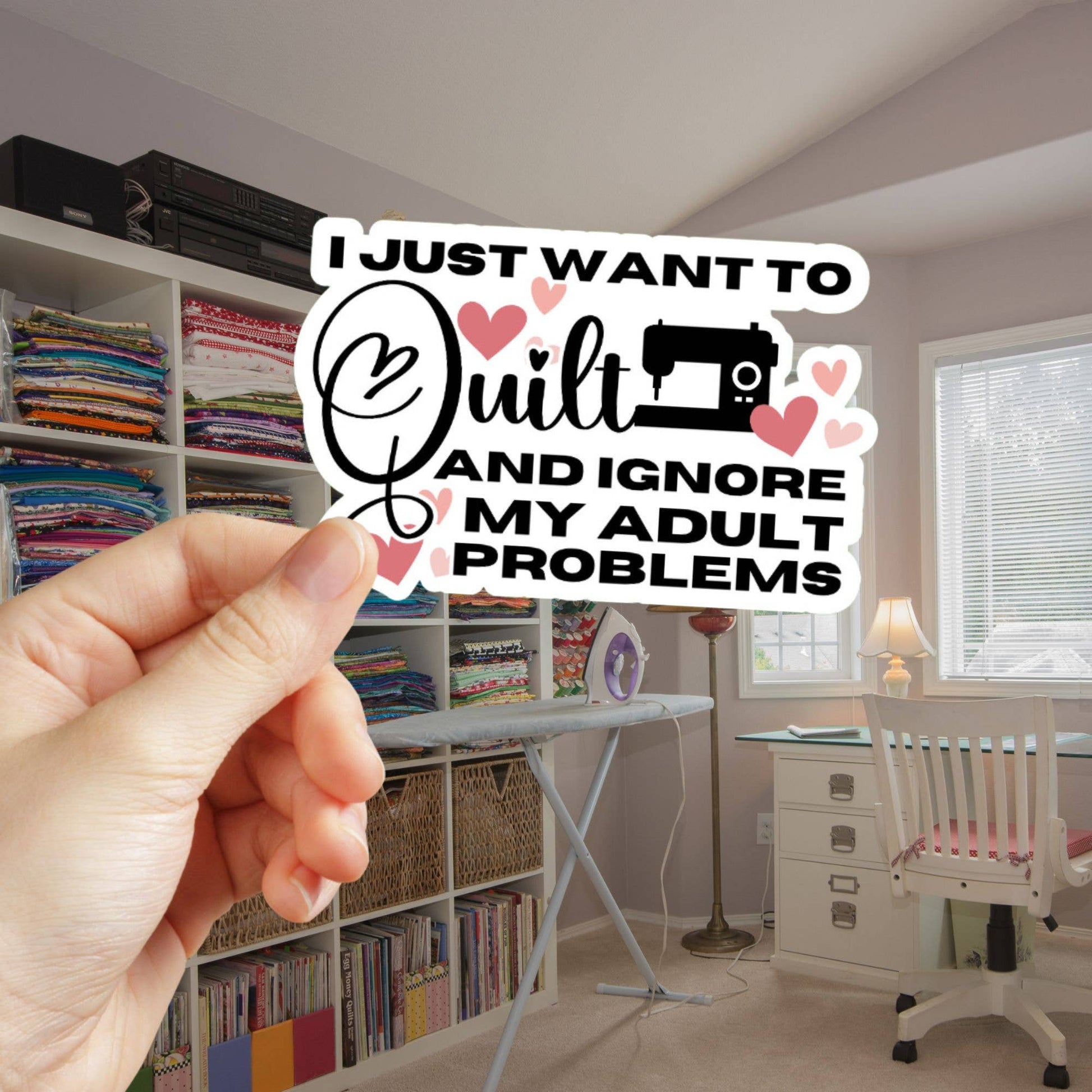 I Just Want To Quilt And Ignore My Adult Problems sticker.