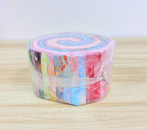 Celebrate colour and joy with the Bali Carnival Dreams strip roll—a radiant explosion of pastel rainbows, cotton candy hues, and playful hand-dyed batiks. From soft lilacs to sky blues, peachy corals to bubblegum pinks, each strip dances with festive charm and tropical whimsy, wrapped in a sheer ribbon like a sweet treat waiting to be unwrapped.