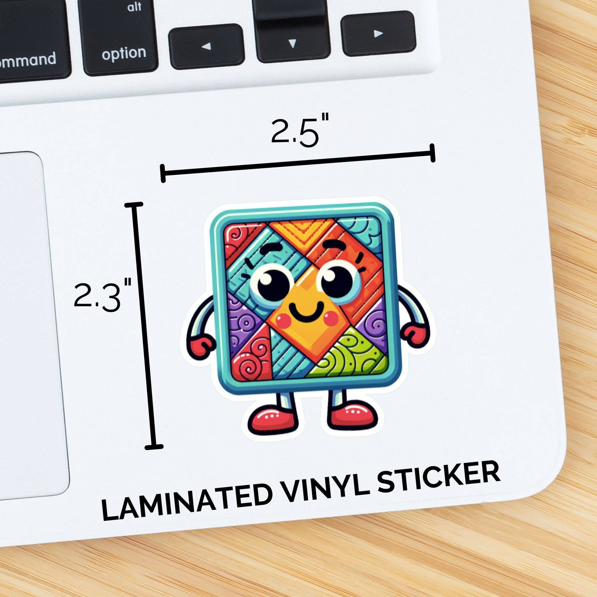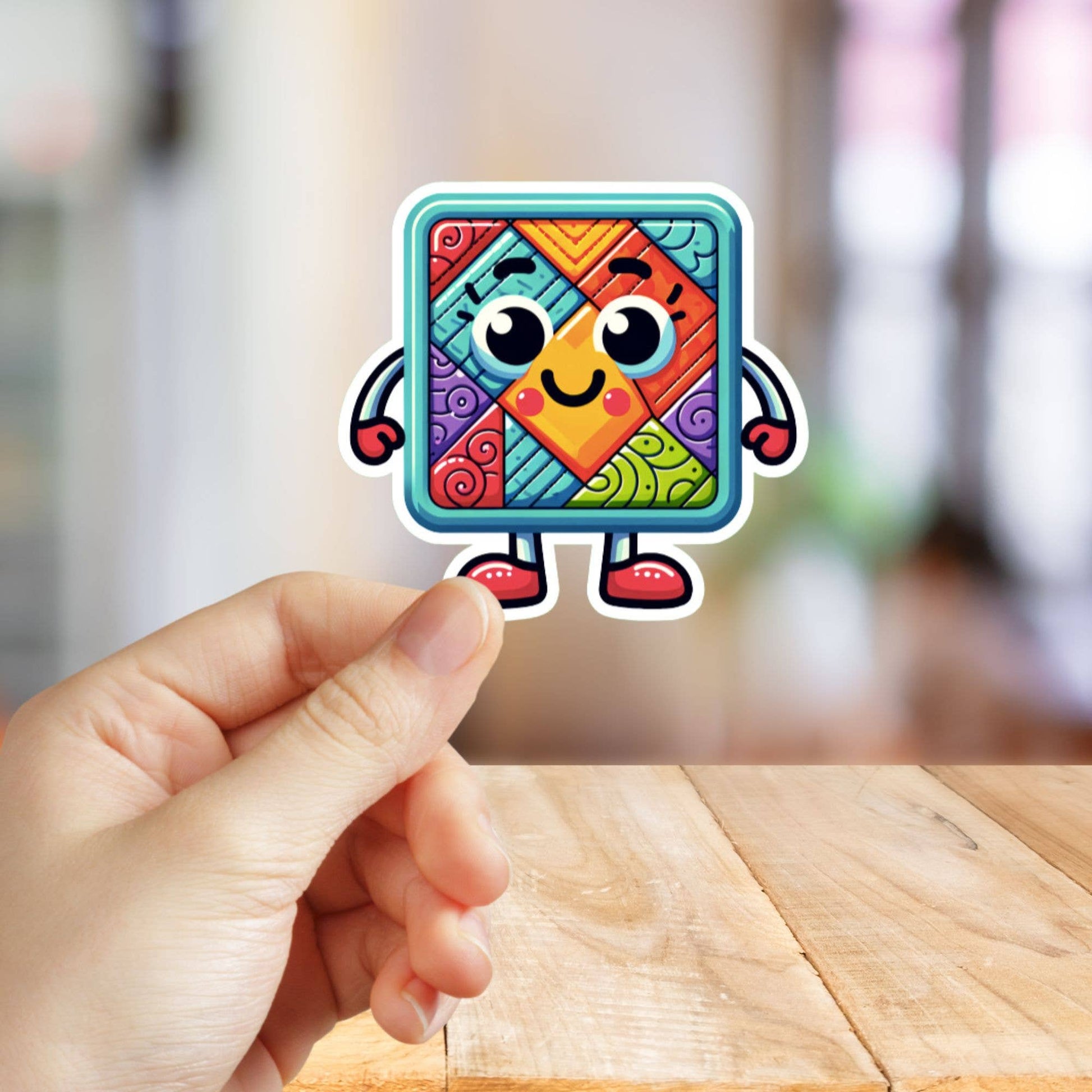 Introducing our adorable quilt mascot vinyl sticker, guaranteed to add charm to any surface! This cute cartoon-style character is perfect for embellishing your crafting tools, notebooks, or even your water bottle. Crafted from durable, water-resistant vinyl, this sticker is designed to withstand everyday wear and tear, ensuring it stays vibrant for a long time. Let this lovable quilt mascot accompany you on your quilting adventures, serving as a cheerful reminder of the joy found in creativity. Whether you're a seasoned quilter or just starting out, this sticker is sure to bring a smile to your face and brighten up your day. Treat yourself or surprise a quilting enthusiast with this delightful accessory that captures the whimsy of the craft.