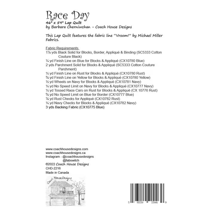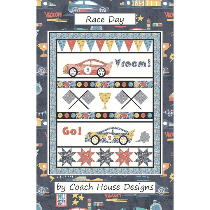 Vroom Vroom... This 46" x 59" children's lap quilt is perfect for your favorite little speedster. Race Day has both applique and piecing!