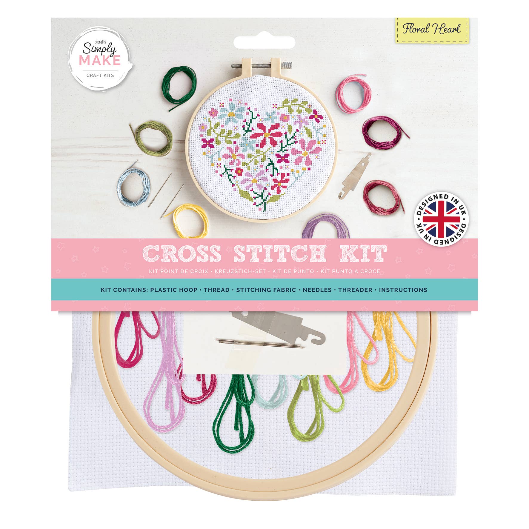 Simply Make Cross Stitch Craft Kit - Floral Heart Design