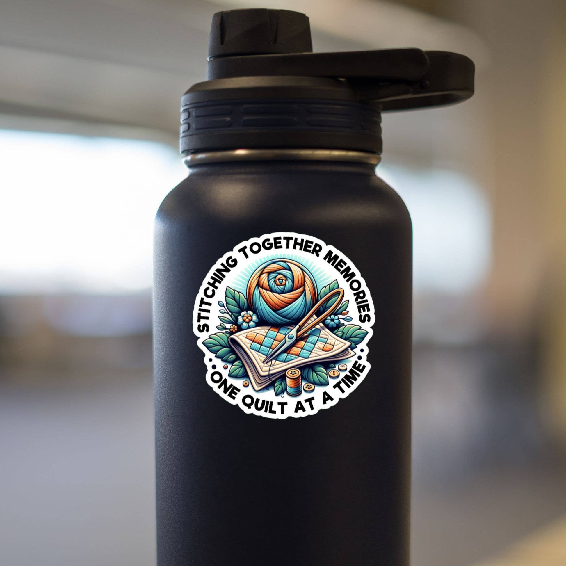 Stitching Together Memories One Quilt At A Time Sticker